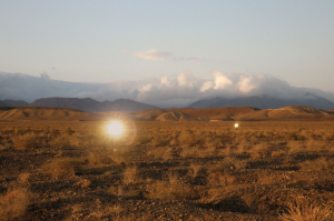 The series of works entitled Muse that is inspired by Plato’s quote, ‘The sun’s body is seen by everyone, its soul by no one’ and depicts the artist attempts to reflect the sun with a mirror in the scope of the camera: her attempt to materialize the light by reflection asserts a metaphor of being and nonexistence. Her movement displays as several ghost-like figures in the mountain, desert and forest proliferate and zoom out, getting further from the camera while she carries a 50 x 50 cm mirror. She reflects the light in various distances until a tiny star-like light becomes visible. The function is remarkable as it is done by intention: a tiny reflection leads to reflexion and creates various layers of meanings.