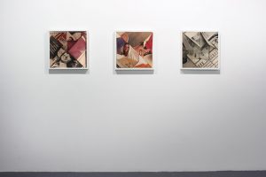 a new meaning for an image by putting it in a new context. She found it more interesting to fold images instead of cutting these photos which gives the composition a relief quality, also utilizing the texts and letters in a way that they become images rather than text. She assumes that this folding technique is quite important because there will be an image on the backside that you can not see, a hidden image or maybe a secret message. The matter of what we can make that is replaced by how we make do with what we have and the starting point from virgin materials faded in the creating meaning in the innumerable flows of productions.