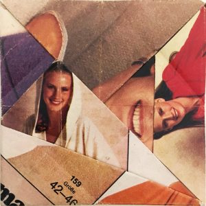 in lives. Zarfsaz folds vintage photographs and magazine papers such as German Burda moden fashion magazines, materials that carry a nostalgic sense of imported culture in a different context. She manages to create intriguing images with these photos, that is what collage serves, to create