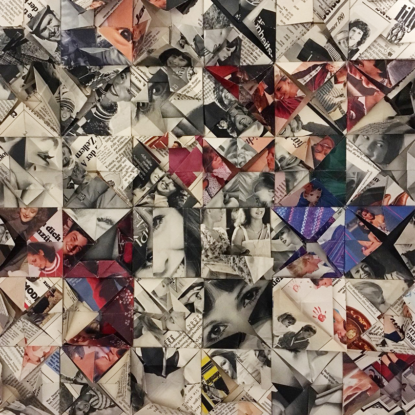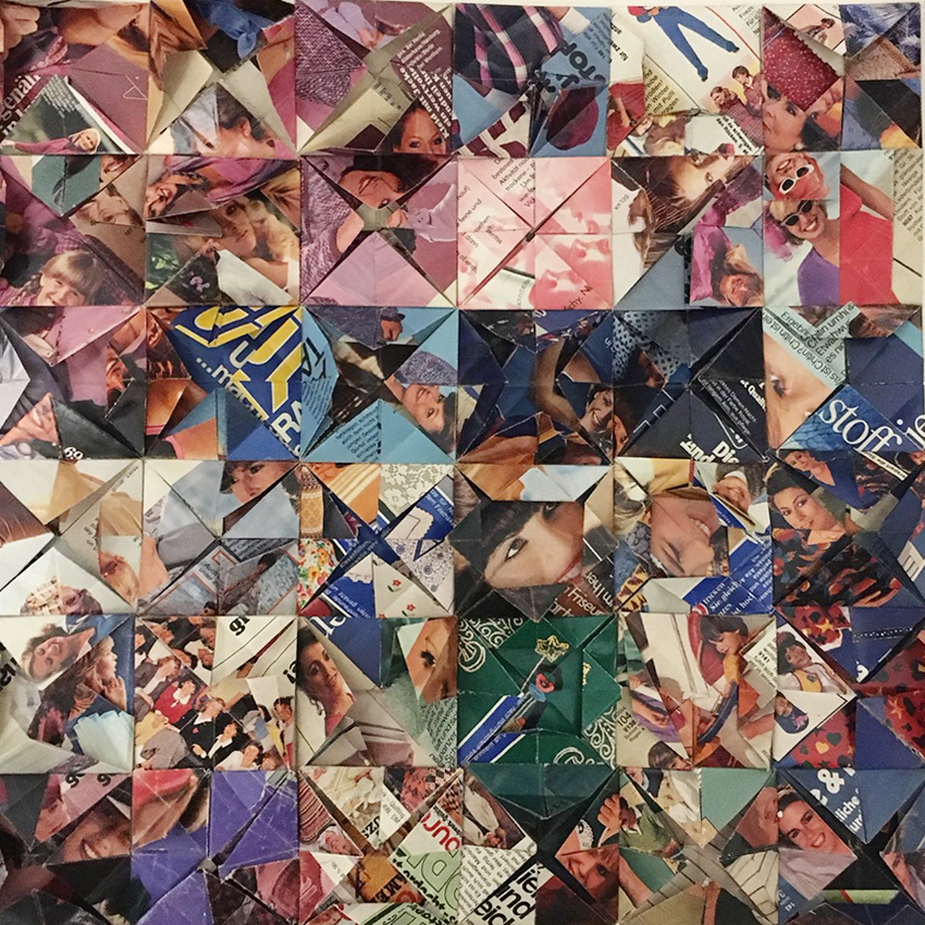 Based on images of magazines mainly inspired by Iranian geometric patterns of Islamic architecture. In this series of pieces, the concept blurs the idea of collage and assemblage which